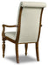 With a world-traveled pedigree, designer details and exquisite comfort come together in the Archivist Arm Chair to create a versatile chair of inviting elegance. From the roll-top back to the shaped goose-neck arms to the carved legs to the upholstered tack trim around the seat and back, the Archivist Arm Chair will welcome guests to linger around the table or in the family room as an extra seating option. The soft casual finish over rustic Pecky Pecan veneers contrasts beautifully with the neutral colored Aubergine Linen fabric on the seat and back.
