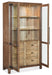 Inspired by California wine country and influenced by the quaint bungalows and craftsman architecture of the region, the Vineyard Row Display Cabinet is made of Pecky Hickory and White Oak Veneers with wood-framed seeded glass doors with rustic hammered metal hinge accents. The cabinet features a two- tone finish with the light-and-airy Sonoma on the inside and the robust Napa on the doors. Along with two self-closing drawers, there are two lights with a 3-intensity touch-switch located on the right middle hinge. The hammered metal bar pulls complement the metal hinges.