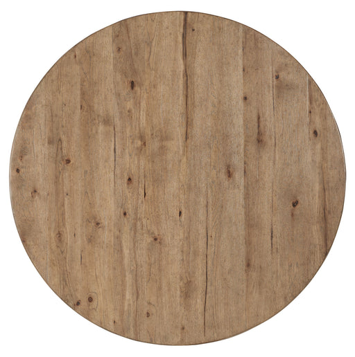 Inspired by the casual wine country lifestyle, the 62-inch-round Vineyard Row Dining Table has a wine-barrel-shaped base and a two-tone finish comb...