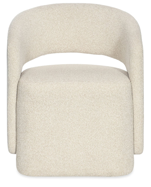 Softly rounded and fully upholstered, this arm chair features a barrel-style open back and plush Matera Pearl fabric. A stylish and comfortable com...