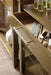 Minimalist, modern and sleek, the Curata Bunching Bookcase mixes a brushed brass metal silhouette with tinted glass shelves and a brushed brass pull on the single drawer. Three fixed shelves.