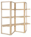 Serene with a modern twist and clean lines, the Retreat Folding Etagere defines and declutters your space. With three fixed shelves, the etagere is finished on all sides and can be used in the center of a room and from either side. It is crafted of Oak Veneers and finished in the sand-colored Dune, transparent by design to reveal the grain patterns of the wood veneer for an organic appeal.