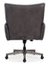 Like a favorite leather jacket, the Quinn Executive Swivel Tilt Chair is offered in a comforting design with a tight seat and back trimmed in flange welt trim. Covered in the Denovo Thunder semi-aniline top-grain leather, the chair has a metal base, adjustable height and is on casters.
