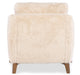 Get the laid-back feeling of staying in your bath robe all day with the Cynthia Chair, covered all over in a cozy furry fabric called Yakety Yak Sand. The wood legs and wood trim on the arm fronts have a light natural finish.