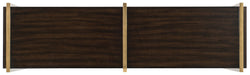Black Walnut Veneers, metal and glass blend together in a mixed media medley to create a look of refined organic elegance in the Classic Credenza. The earthy color palette combines dark wood, cream and gold in the quatrefoil pattern on the front, the hardware and the metal base. Four doors with decorative glass with one adjustable shelf behind each pair of doors. Ventilated back panel.