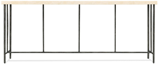 Crafted with a textured metal base and a sleek stone top, this narrow rectangular console table brings both durability and sophistication. Ideal fo...