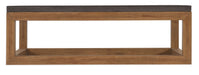 With a simple and straightforward silhouette that evokes the weight, heft and heritage of beam construction, the Big Sky Cocktail Table boldly contrasts a Vintage Natural wood base with a crosshatch texture on the top in the charcoal Furrowed Bark finish.