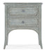 Capturing the vintage charm of coastal locales, the Charleston Two-Drawer Accent Table has an arched design between the understated cabriole legs and framed door fronts. Crafted of Hickory Veneers with solid wood tops, the table is finished in Waterscape Blue, a stain and paint combination with a transparent blue-green coloration, allowing you to see into the natural grain of the wood. The decorative bail pulls have an antique pewter finish with white hang up. Two self-closing drawers.