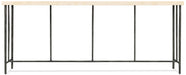 Crafted with a textured metal base and a sleek stone top, this narrow rectangular console table brings both durability and sophistication. Ideal for entryways or behind a sofa, it offers a neutral gray palette and the natural charm of the Driftwood collection.