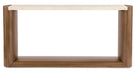 The Eleana Console Table is perfect for creating an elegant focal point in entryways or living rooms. Featuring a Light Caramel walnut veneer frame, a honed marble top in white and beige tones, and a slender silhouette, it blends timeless craftsmanship with contemporary style. This table offers a chic surface for décor or practical use.