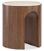 The Eleana Round End Table combines modern elegance with a timeless aesthetic. Featuring a honed marble top, Light Caramel walnut veneer, and a rounded archway base, this end table provides a chic surface for décor or daily use. Perfect for adding a luxurious accent next to sofas or chairs.