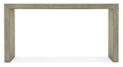 Capturing the essence of nature’s organic color palette on a clean-lined, simple silhouette, the Chimney View Console Table is crafted of Oak Veneers with a soft smoked gray Mink finish. The console has a narrow 20-inch depth, making it a great fit for smaller spaces, and is fully finished on all sides.