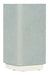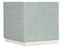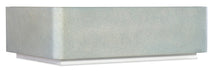 Serene and stylish with a spa-like color scheme, the modern Atlantis Table has a rectangle shape, rounded corners, a painted tempered glass top, raffia-wrapped exterior and white plinth base. The top is painted in a creamy white tone, and the raffia wrap is in a pale blue tone inspired by Caribbean beaches.
