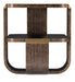 With a unique silhouette and X-motif base, the Edmun Side Table is a striking addition to any living space. Featuring a rectangle shape with rounded edges, the table is crafted of Maple Veneers in a dark wood finish with gold accents. One fixed shelf.