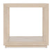 A brilliant blend of materials, the Nouveau Chic Rectangle End Table combines Oak Veneers, tempered glass and a metal frame. The beveled-edge glass top looks down onto the lower wood shelf featuring a dramatic sunburst veneer pattern. Finished in the serene Sandstone finish with light wire brushing for tactile appeal.