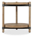 Inspired by California wine country and influenced by the quaint bungalows and craftsman architecture of the region, the 24-inch round Vineyard Row End Table is crafted of Pecky Hickory Veneers with rustic hammered metal brackets beneath the top and the base. There are three legs and one fixed shelf.