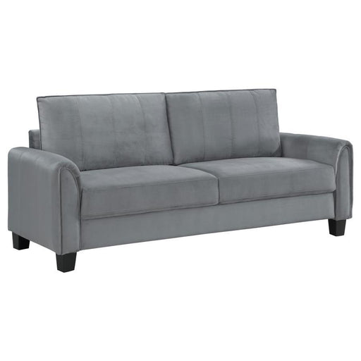 Captivating character blends with timeless style in a modern upholstered sofa. In gray upholstery that's soft like velvet, the sofa is a lovely foc...