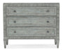 Capturing the vintage charm of the coastal South, the Charleston Three-Drawer Accent Chest has carved floral fretwork accents and tapered legs. Crafted of Maple Veneers with a Solid-Wood Edge top, it is finished in Waterscape Blue, a transparent blue-green coloration allowing you to see the natural grain of the wood. The 3 self-closing drawers have an interior to match the exterior. The antique pewter round knobs have decorative white hangup accents.