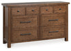 Add exceptional modern farmhouse appeal to your inner sanctum with this dresser. A warm wood-tone finish enhances its rich natural beauty. Charmingly simple with spacious storage drawers and a sturdy silhouette, this piece offers a casually comfortable look that’s right at home.