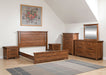 Add exceptional modern farmhouse appeal to your inner sanctum with this panel bed. A warm wood tone enhances its rich natural beauty. Charmingly simple with thick posts, plank-style details and a sturdy silhouette, the bed offers a casually comfortable look that’s right at home.