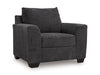 This chair personifies contemporary comfort. Its clean-lined frame and neutral color lend must-have versatility. Softly textured fabric makes it that much more inviting. A welcome combination of chic style and a cozy feel, this piece completes your living room with modern flair.